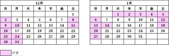 年末年始休業 平成30年12月30日(日)~平成31年1月6日(日)