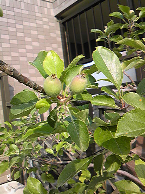 りんごの苗木を植えてから8年目に可愛いい実がつきました。
