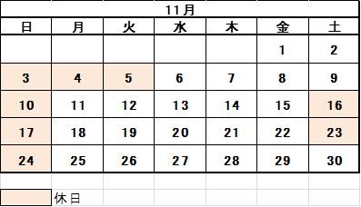 【 特 別 休 日 】 2013年11月5日(火)・16日(土)