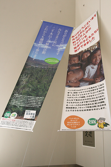 興栄商事のCSR活動の一部をタペストリーにしてエントランスにディスプレーしました。