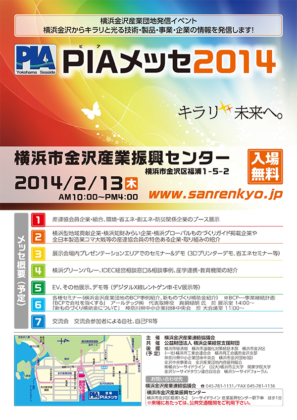 横浜金沢産業団地発信イベント「PIAメッセ2014」に出展が決定いたしました。