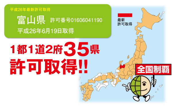 すでに1都1道2府35県で許可を取得し、残りの県もすでに申請中を含め