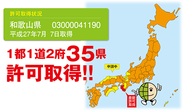 すでに1都1道2府35県で許可を取得し、残りの県もすでに申請中を含め