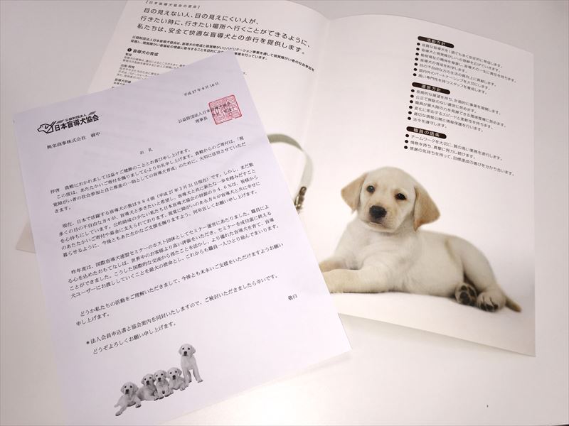 公益財団法人日本盲導犬協会よりお礼状が届きました。