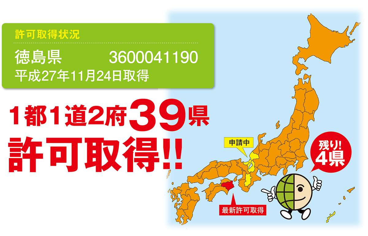 すでに1都1道2府39県で許可を取得し、残りの県もすでに申請中を含め