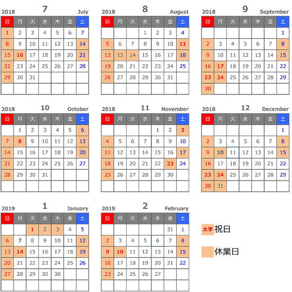 夏期休暇:2018年8月11日(土)〜8月14日(火)の4日間