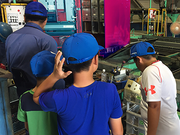 猛暑の夏休み中、子どもたちが夏休みの課題のため工場見学に来られました。